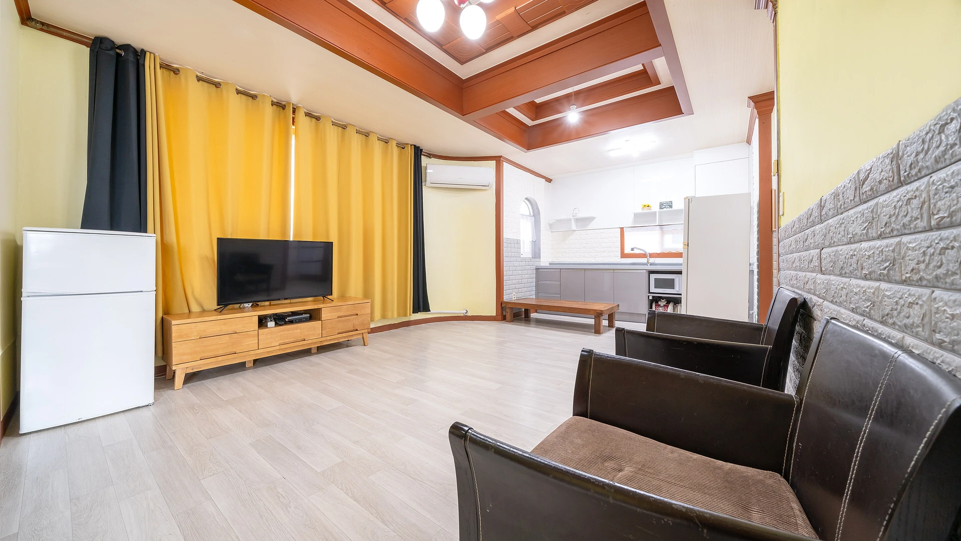 - 집기품목 : TV, 에어컨, 냉장고, 전기밥솥, 가스레인지, 커피포트, 취사시설/도구, 전자레인지, 드라이기, 와이파이, VOD, 욕실용품, 족구장